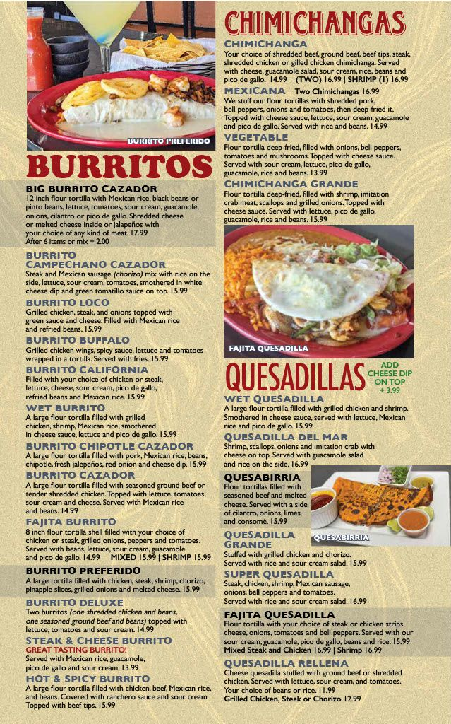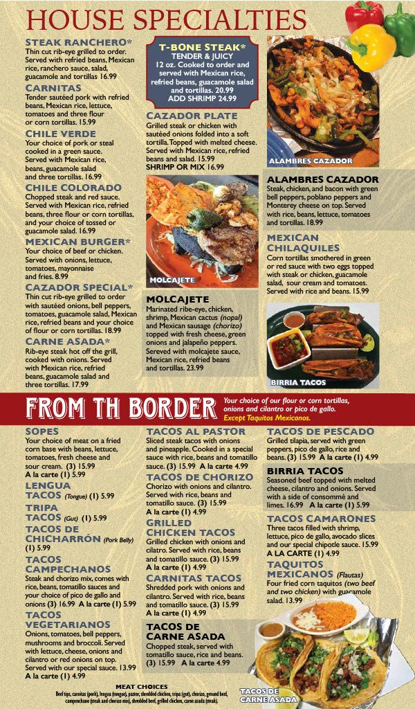 El Cazador Menu